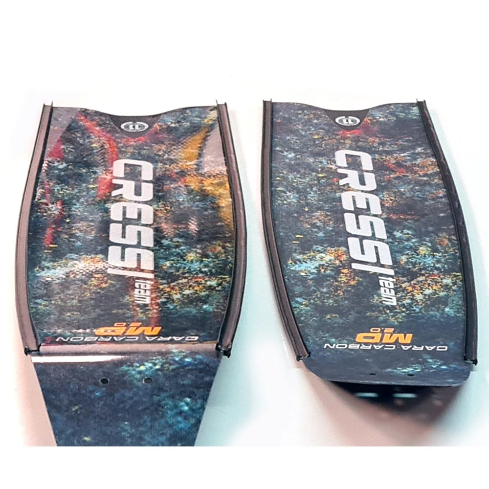 Nouvelle version de GARA CARBON CRESSI TEAM, intensément testée et évoluée par l’équipe Cressi, qui modifie par rapport à la version précédente, la surface de la lame (12% plus grande), la longueur (4cm plus longue), un nouvel angle progressif de 29º et un nouveau répartition des panneaux de carbone et des zones de renfort. Une palme unanimement plébiscitée par tous les types d’utilisateurs et qui permet une adaptation très précise à tous les types de profils d’utilisateurs et d’actions de pêche avec ses 10 combinaisons possibles.