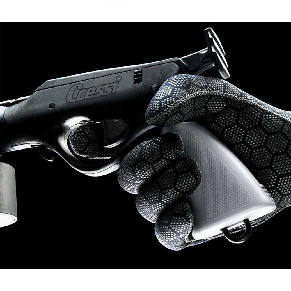 Vendu sous la marque Cressi Specialized , le Comanche Rail 100 présente de nombreux avantages qui facilitent les tirs sous l’eau par rapport à d’autres armes. Une poignée en caoutchouc antidérapante , parfaitement moulée à la forme de votre main, se mélange à un pontet élargi pour permettre des tirs fluides et faciles depuis n’importe quelle position, même avec des gants. Le système de fixation du dévidoir à baïonnette , situé juste en face du garde-corps, prend en charge jusqu’à 4 accrochages différents .
