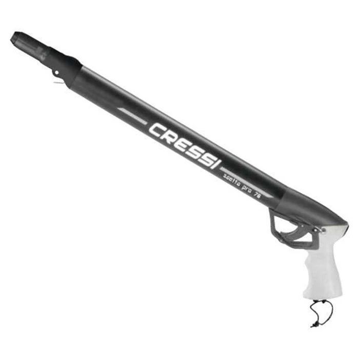 Inspirée de l’ergonomie et de l’utilité de la série Apache, la poignée anatomique du Saetta Pro 110 possède un pontet surdimensionné et sa conception inclinée offre plus de stabilité et de confort. Pour éviter une faible visibilité et des pertes accidentelles dans le fond marin, le manche de ce fusil porte une peinture blanche spéciale.