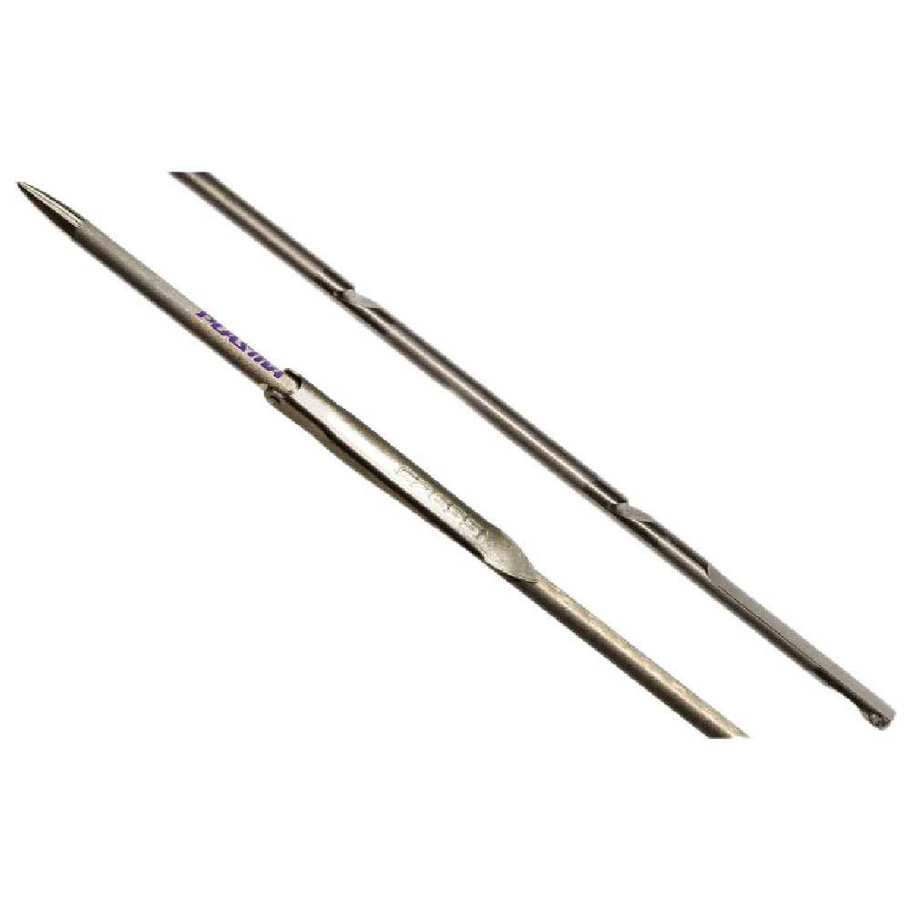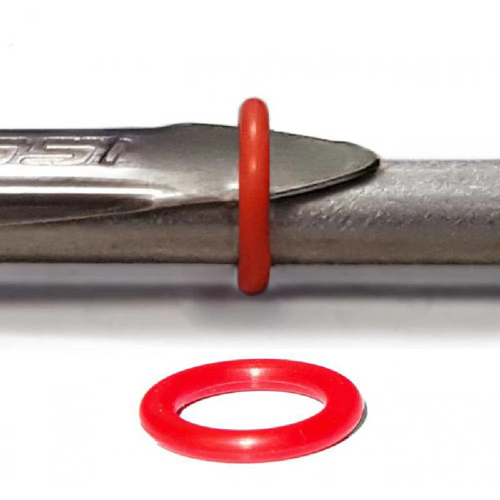 Aileron en acier inoxydable de quai AISI 301 de 0,8 mm d’épaisseur. Résistance mécanique 1269 Nw/mm2 proche de celle de l’arbre. Goupille et orifice prévus au diamètre de l’arbre entre 2 et 2,5 mm. Longueur proportionnelle à l’arbre ; 55 mm de mesure de 90 à 120 cm et 70 mm de 130 à 150 cm. Rabat de deux volumes, étudié pour l’hydrodynamisme maximum. Assemblage avec un léger réducteur de 1 cm de longueur qui intègre dans le profil les rivets et améliore notablement la portée de la tige. Le réducteur ne suppose pas de gaspillage de résistance puisque l’axe d’ailette est prévu en fonction du diamètre de l’arbre. Joint torique de fermeture du volet inclus (couleur rouge).