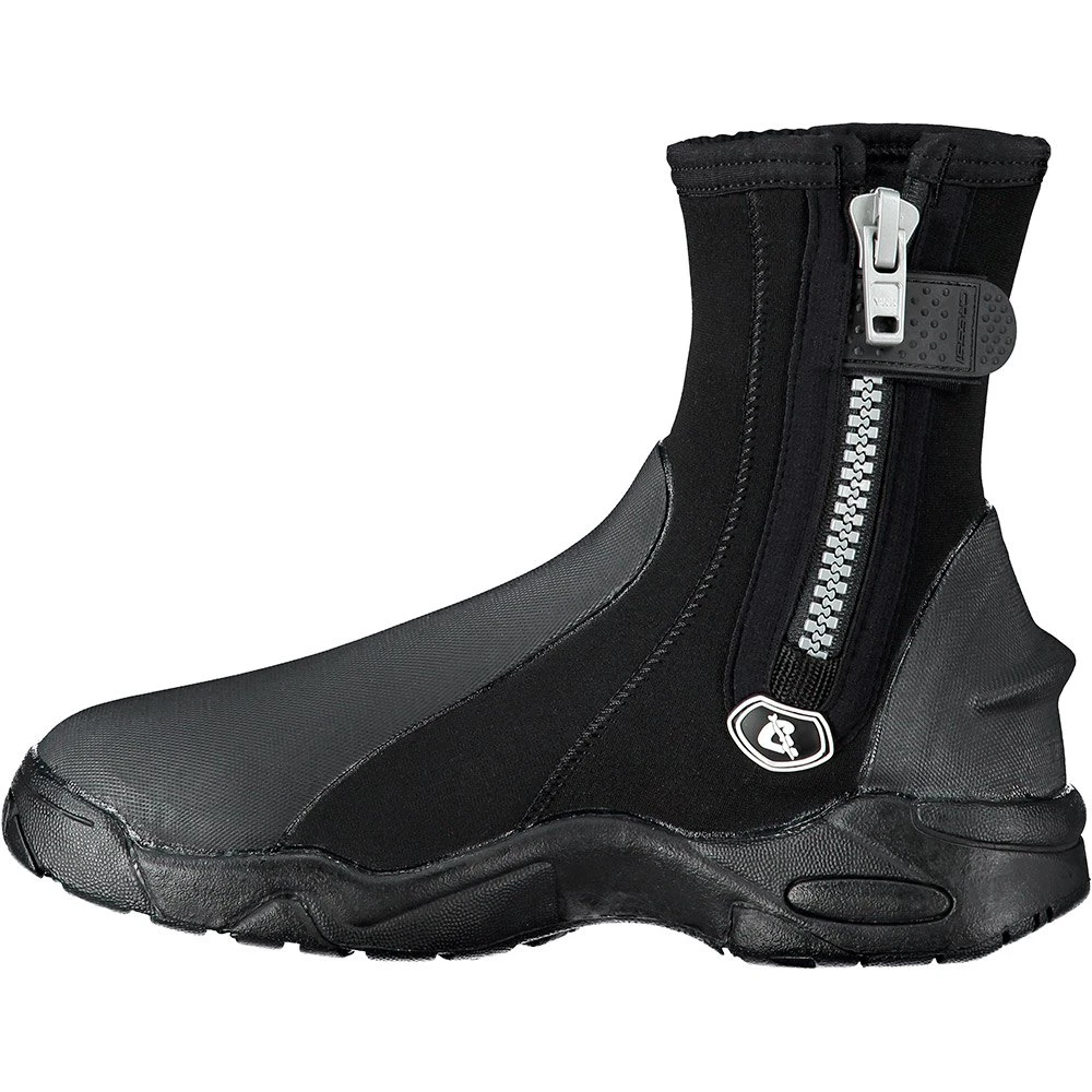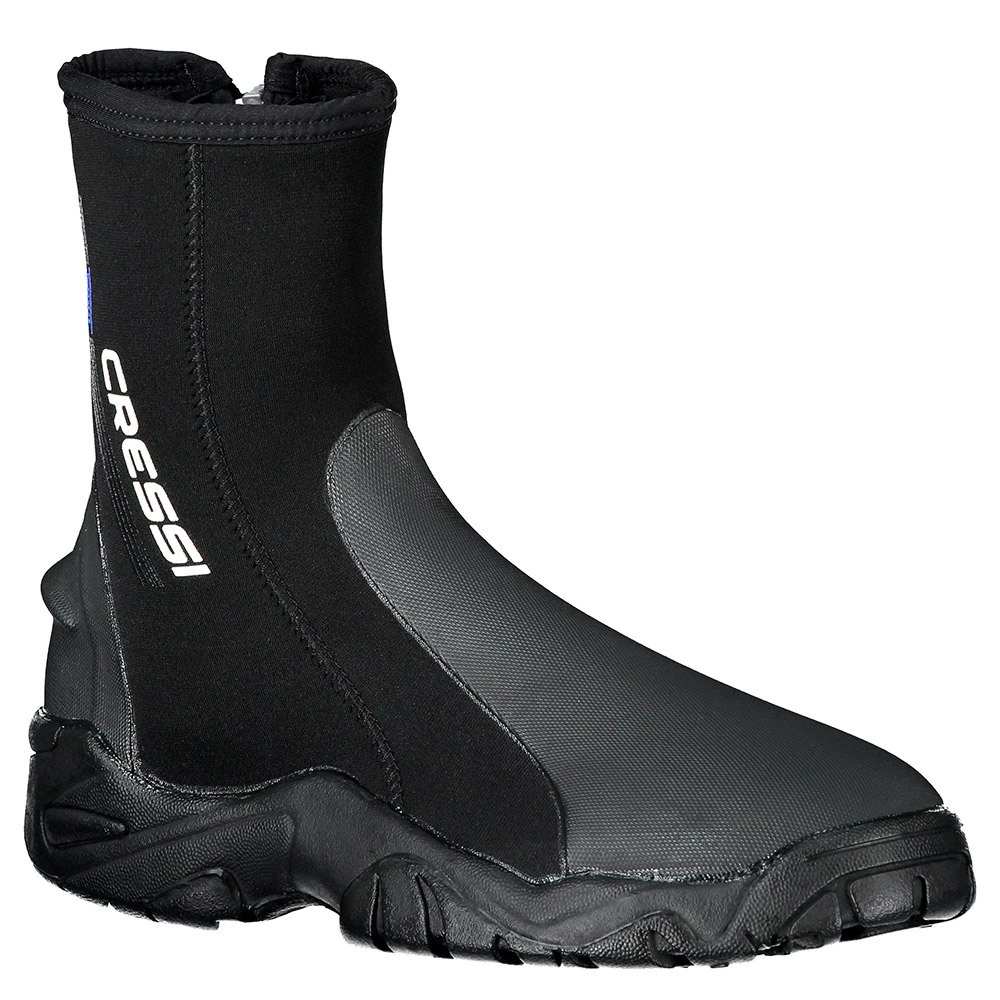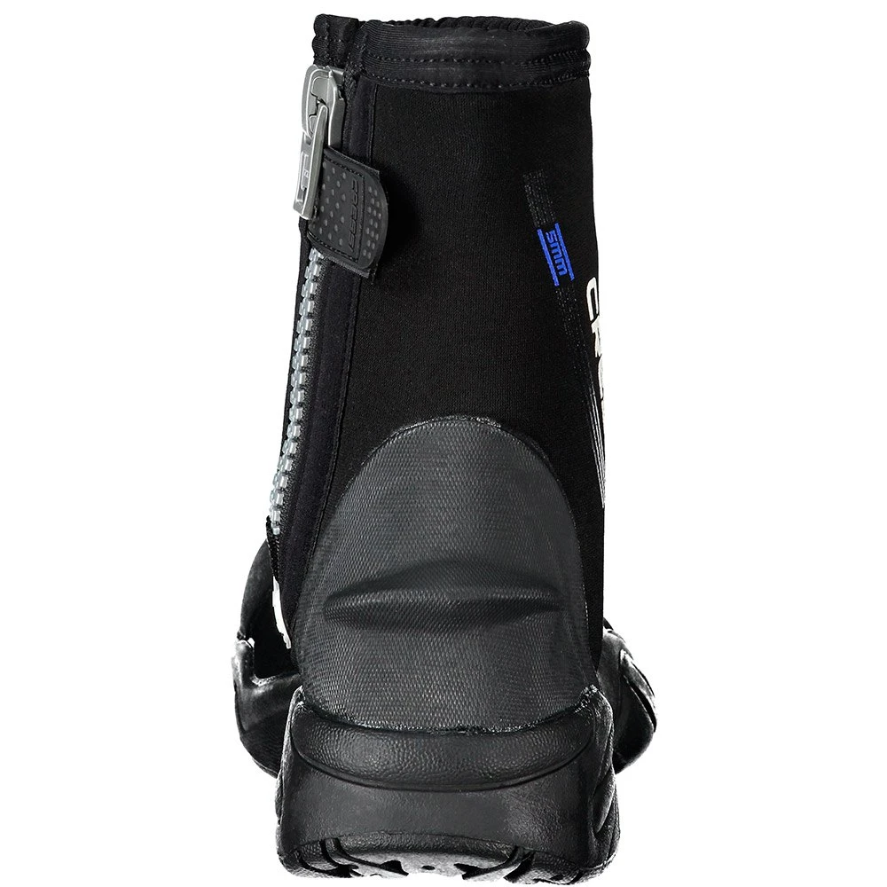 Ces bottes, conçues pour être utilisées avec des ailerons de talon ouverts, sont fabriquées en néoprène doublé nylon souple de 6 mm, idéal pour les eaux plus fraîches. La protection PU renforcée pour le cou-de-pied et le talon offre une résistance à l’usure. L’encoche de maintien de la sangle de dérive est intégrée au talon. Une fermeture éclair YKK pratique s’ouvre à la cheville pour un enfilage facile. Les infiltrations d’eau sont réduites au minimum grâce à un joint hydraulique à rabat fin protecteur sous zip. La bride de cheville personnalisée Cressi a un Velcro dans la partie intérieure. Une moulure rigide, antidérapante et haute adhérence recouvre toute la semelle.