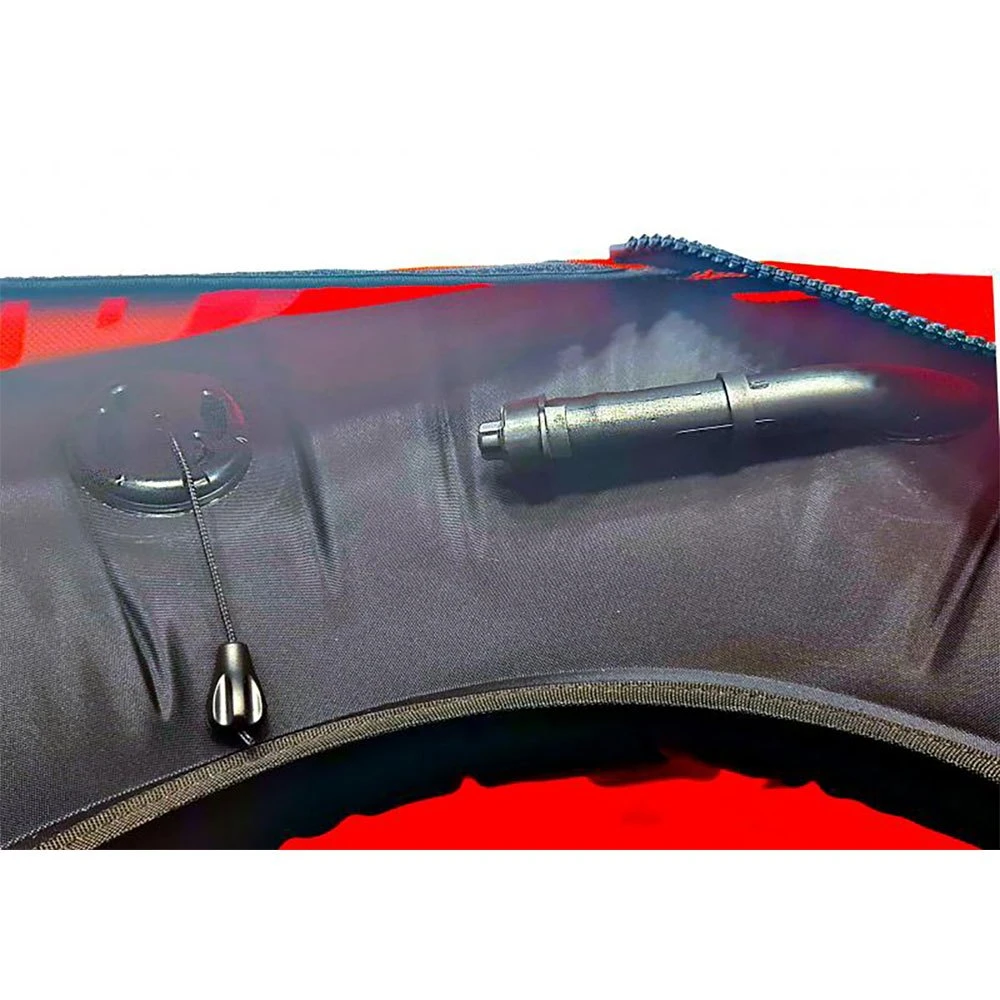 – Gonflage au moyen d’un embout en caoutchouc avec clapet anti-retour et bouchon. Valve de dégonflage à profil bas avec poignée de traction. Les deux situés dans la chambre intérieure pour éviter une activation accidentelle