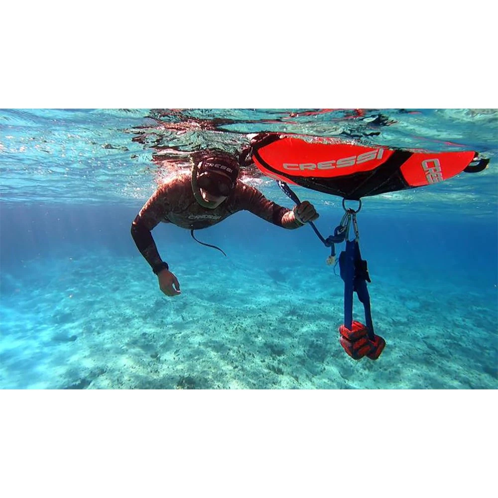 Bouée haut de gamme pour l’entraînement et la signalisation en apnée développée et testée en collaboration avec l’équipe d’apnée Cressi.