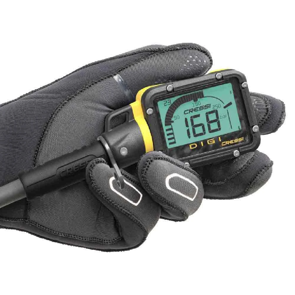 Nous avons fait confiance à l’une des données les plus importantes concernant notre sécurité, sinon la plus importante, la pression d’air du réservoir, à un instrument extrêmement simple et imprécis, le manomètre analogique, une spirale de cuivre à travers laquelle un trou détecte la pression et montre la lecture dans une sphère par le déplacement d’une aiguille. Avec THE LINE DIGI Cressi propose un instrument de haute précision qui fournit également d’autres données d’intérêt constant pour le plongeur. Le tout avec une taille et un coût très contenus.