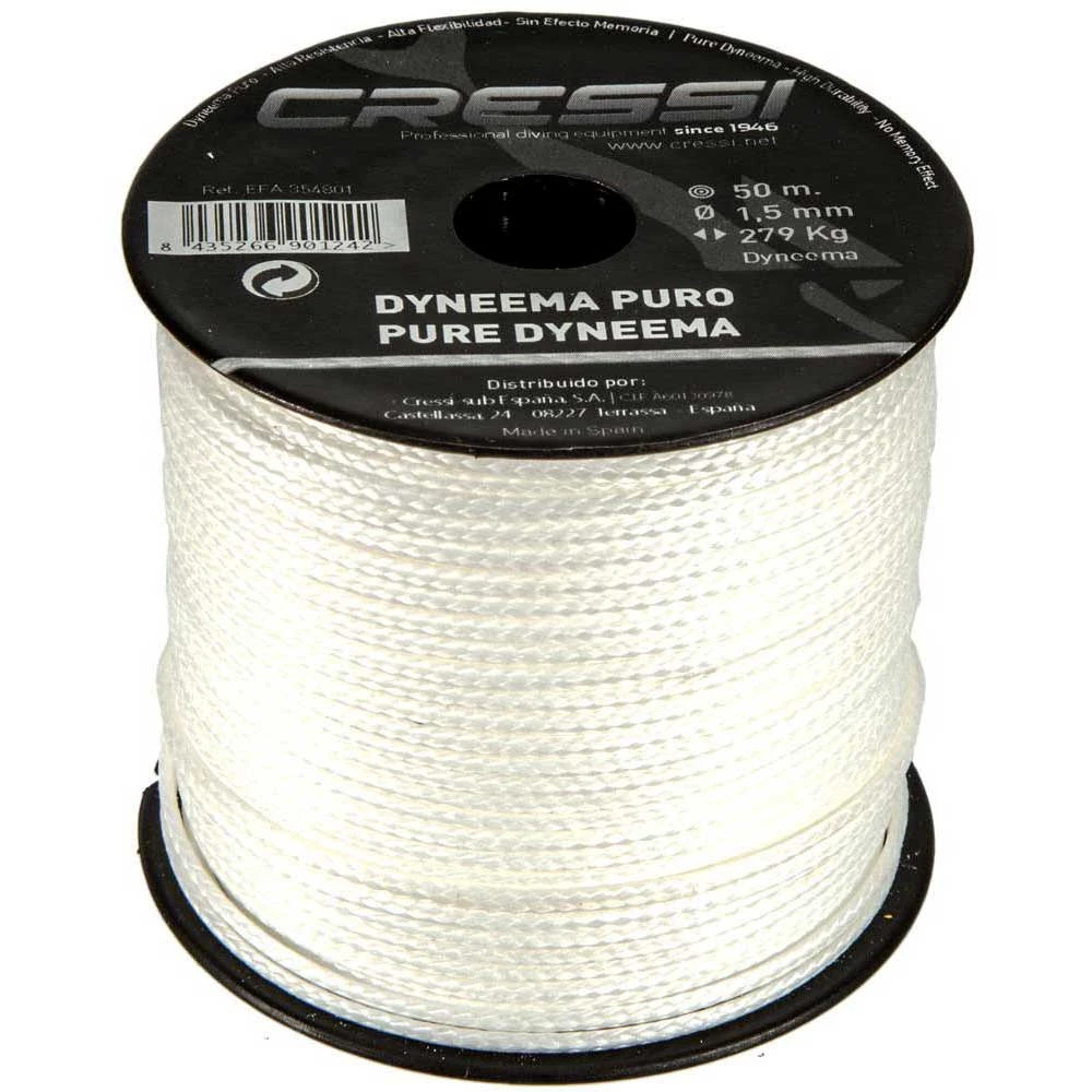 Corde pure Dyneema haute résistance (195 kg) parfaite pour ;utilisation en bobine, fusil à harpon ou pour le bricolage. Couleur blanche. Présentation en bobine de 50 m.