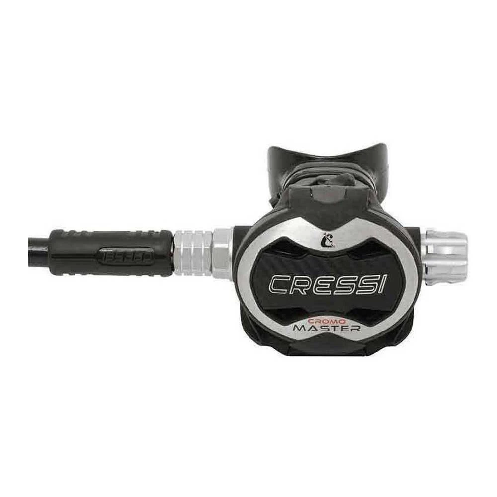 Il est combiné avec le Master Cromo, le 2ème étage pneumatique équilibré qui présente une forme elliptique et un bouton latéral pour le réglage du Venturi. Les étages sont connectés avec le tuyau Cressi Safeflex LP, un tuyau plus performant que le tuyau standard. L’AC25m / Master Cromo est disponible en version DIN et INT.