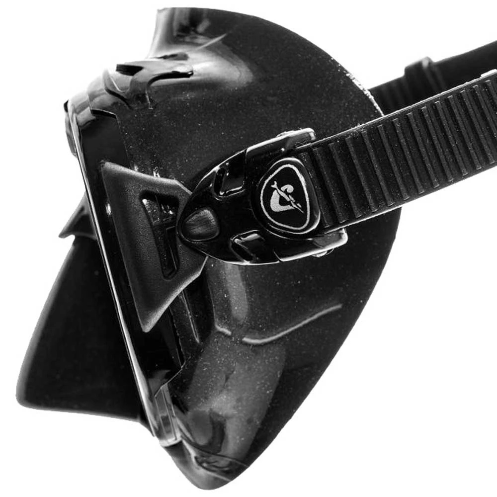 Ce masque à la structure fusiforme particulière est le résultat du brevet du masque Nano de très grande qualité. l´INTEGRATED DUAL FRAME TECHNOLOGY SYSTEM permet de fait d´unir la jupe en silicone avec le hublot sans aucune interruption dans la continuité de courbe. Le résultat est un masque avec une structure fortement hydrodynamique et avec des dimensions largement réduites. Le champ de vision obtenu est particulièrement large au niveau des côtés et dans la partie inférieure. Le cerclage, dans sa partie frontale, se caractérise par la présence d´un insert en silicone structurel qui améliore la tenue du masque et crée un jeu de couleur extrêmement attrayant. Boucles basculantes au réglage micrométrique.
