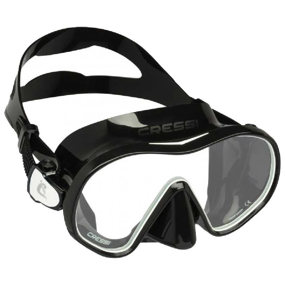 Masque à lentille unique comportant un assemblage unique de lentille et de jupe sans cadre. La conception à double masque F de Cressi lie une jupe à double bord en silicone de haute qualité directement à une lentille en verre trempé unique pour une simplicité ultime. Technologie colorée sans cadre. Le facial en silicone est assemblé directement sur le verre sans avoir besoin d’un cadre. Ce système garantit une bonne visibilité dans toutes les directions. Le faible volume interne permet un nettoyage sans effort et les boucles de sangle à réglage rapide sont moulées directement dans la jupe pour un ajustement flexible et une traînée réduite. Le masque double Cressi F a une large conception de sangle de masque fendue pour plus de confort et pour donner une tension uniforme sur la jupe pour une bonne étanchéité.