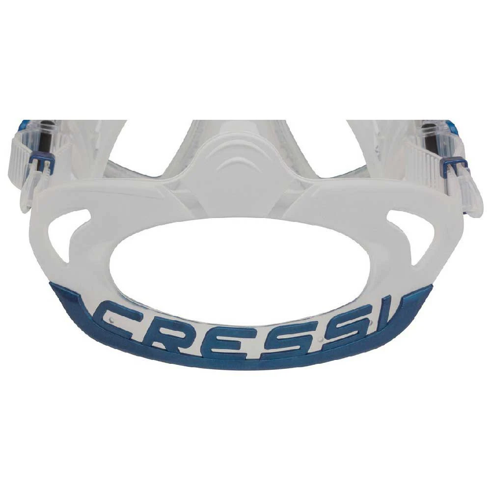 Une membrane brevetée entourant la poche nasale intérieure (1) et les deux poches oculaires intérieures (2) qui agit comme une barrière et retient toute humidité s’échappant involontairement du nez du plongeur lors de la respiration par la bouche. Le résultat est que non seulement l’humidité est canalisée loin des lentilles, évitant ainsi leur formation de buée, mais cela réduit également la nécessité de compenser la pression. Pour améliorer encore l’effet anti-buée, Cressi suggère, les premières fois que le masque de plongée est utilisé, de vaporiser une solution anti-buée ou d’appliquer de la salive à l’intérieur des lentilles puis de les rincer à l’eau.