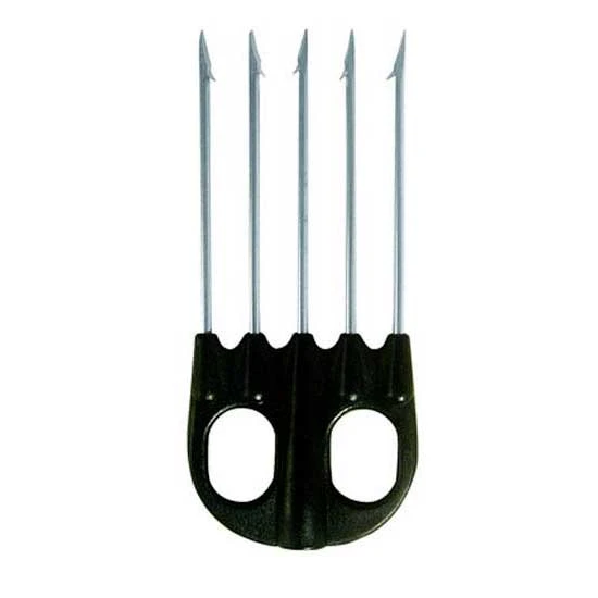Tridents de 3, 4 ou 5 embouts en acier trempé avec corps renforcé de nylon avec de la fibre de verre. Vis de 6 mm de diamètre. Trident de 3 conseils de grande agilité, de 5 conseils avec un grand blocage de la capacité de proie et de 4 conseils combinant les deux fonctions.