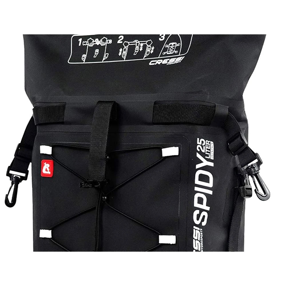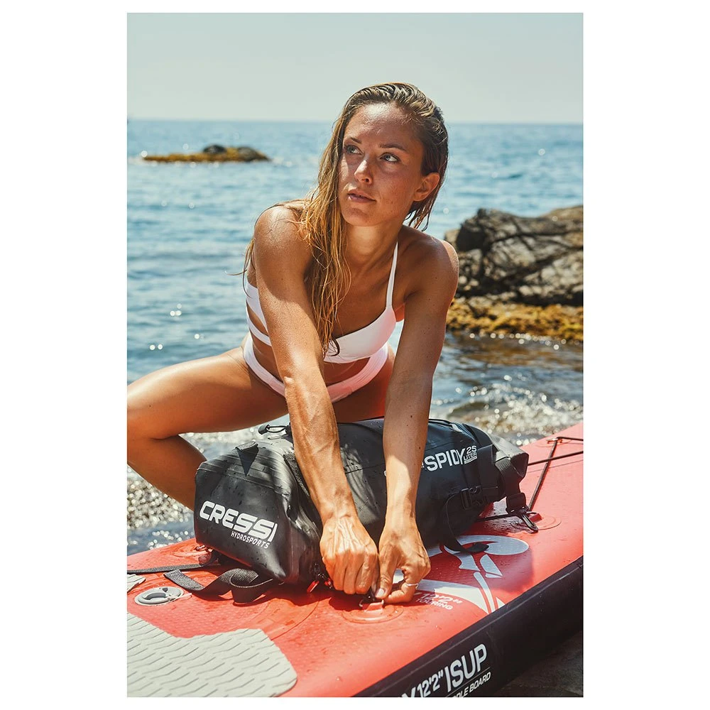 Spidy 25L Dry Deckpack est né de la volonté de créer un sac à dos étanche pouvant être transporté confortablement sur la planche lors de sessions en mer. Spidy est un deckpack doté de sangles réglables avec mousquetons, qui peuvent être accrochées aux anneaux en D de chaque SUP de la collection.