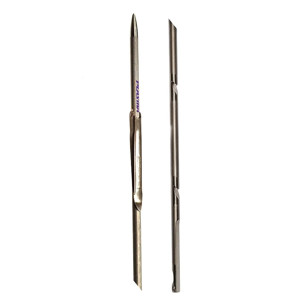 Rabat en acier inoxydable du quai AISI 301 de 0,8 mm d’épaisseur. Résistance mécanique 1269 Nw / mm2 proche de celle de la tige. Broche et orifice prévus au diamètre de la tige entre 2 et 2,5mm. Longueur proportionnelle à la tige; 55 mm dans les mesures de 90 à 120 cm et 70 mm de 130 à 150 cm. Volet de deux volumes, étudié pour l’hydrodynamique maximale. Assemblage avec un réducteur de lumière de 1 cm de longueur qui intègre dans le profil les rivets et améliore notamment la portée de la tige. La réduction ne suppose pas un gaspillage de résistance puisque la goupille d’aileron est fournie en fonction du diamètre de la tige. Joint torique de fermeture du rabat inclus (couleur rouge).