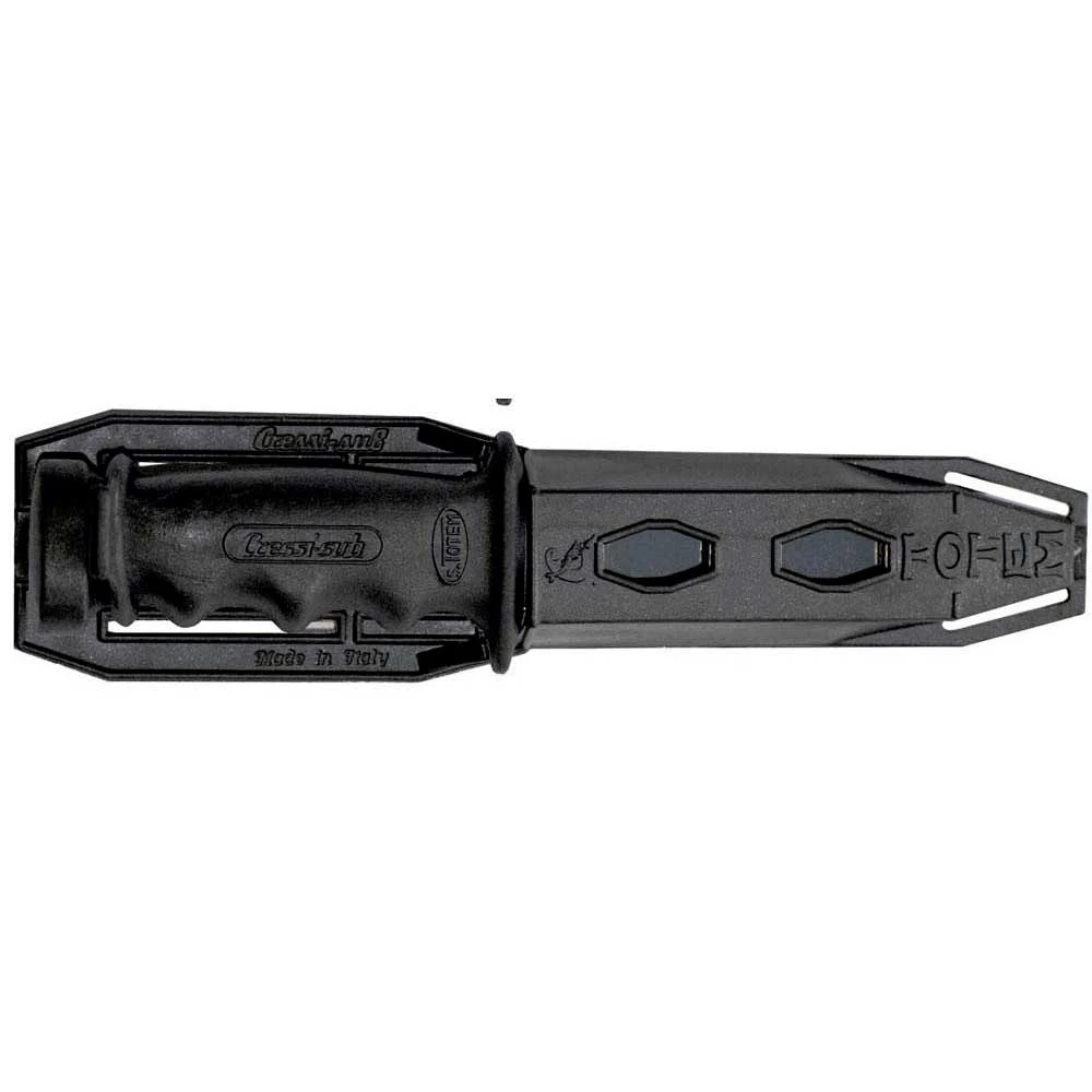 La gaine en matière plastique maintien solidement le couteau, grâce au traditionnel anneau élastique.