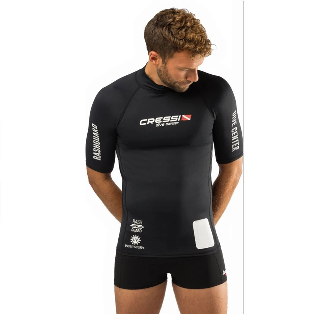 T-shirts à manches courtes en tissu élastique de haute qualité avec filtre de protection UV UPF 30+. C’est un vêtement parfait pour protéger le corps du nageur contre le vent, les rayons du soleil, l’action urticante des méduses et les frottements avec le fond marin.